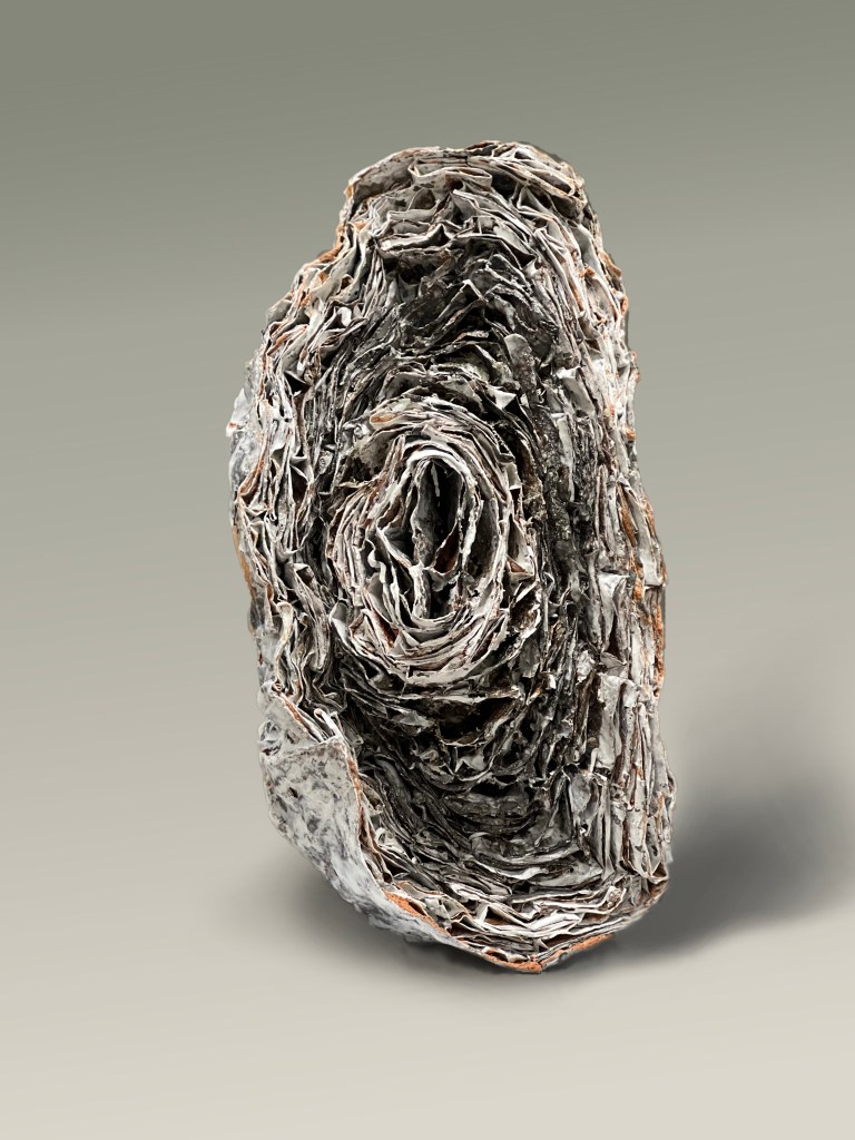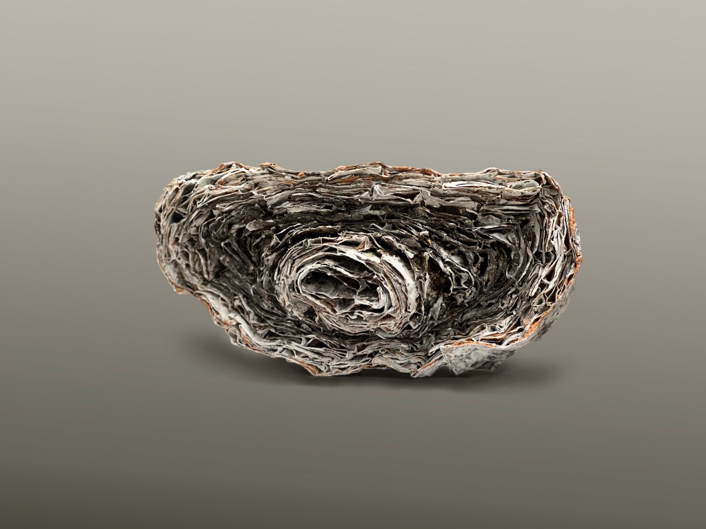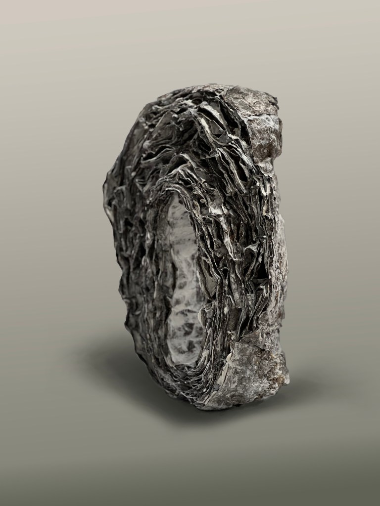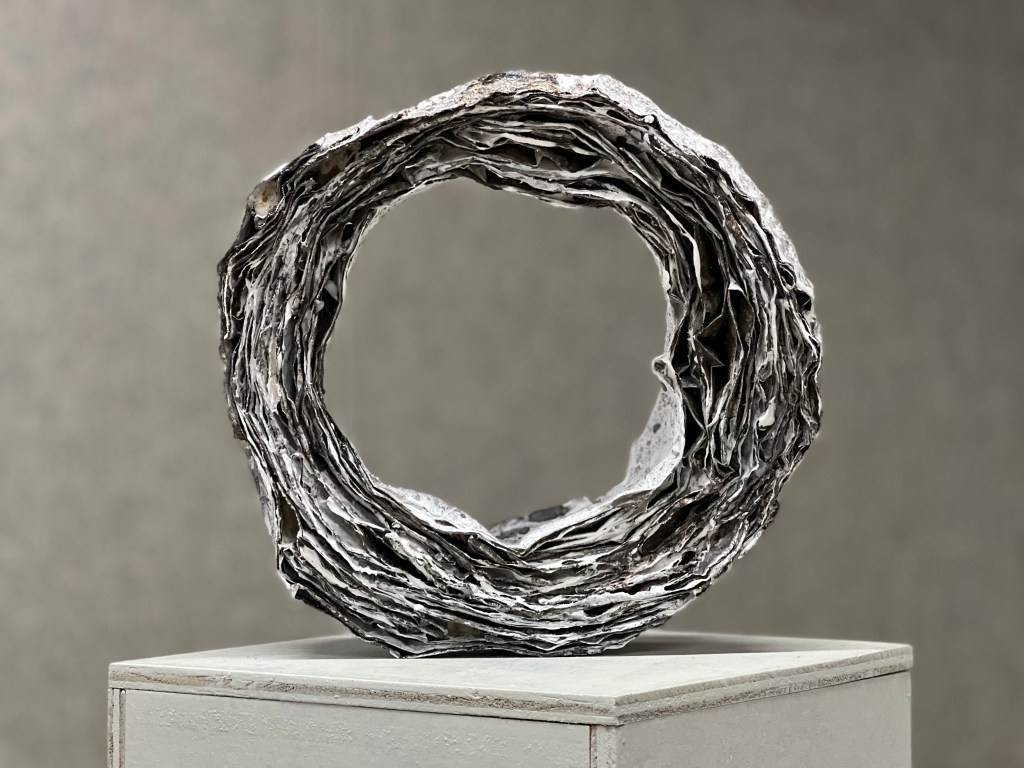 《環》以數百張皺皺巴巴的錫紙堆疊而成,將泥土與日常材料融為一體。通過觀察燒製過程中泥土的自然變化, 嘗試駕馭材料的轉化,為藝術作品注入不可預知的特點。透過創作此肌理豐富的作品,探索物料與陶瓷製作過程之間的連接。隨著製作工藝的成型,去感受粗獷與優雅,脆弱與堅韌,瞬間與永恆…